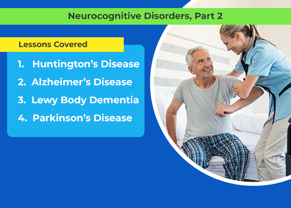 In Neurocognitive Disorders, Part 1, information on four types of disorders was presented: